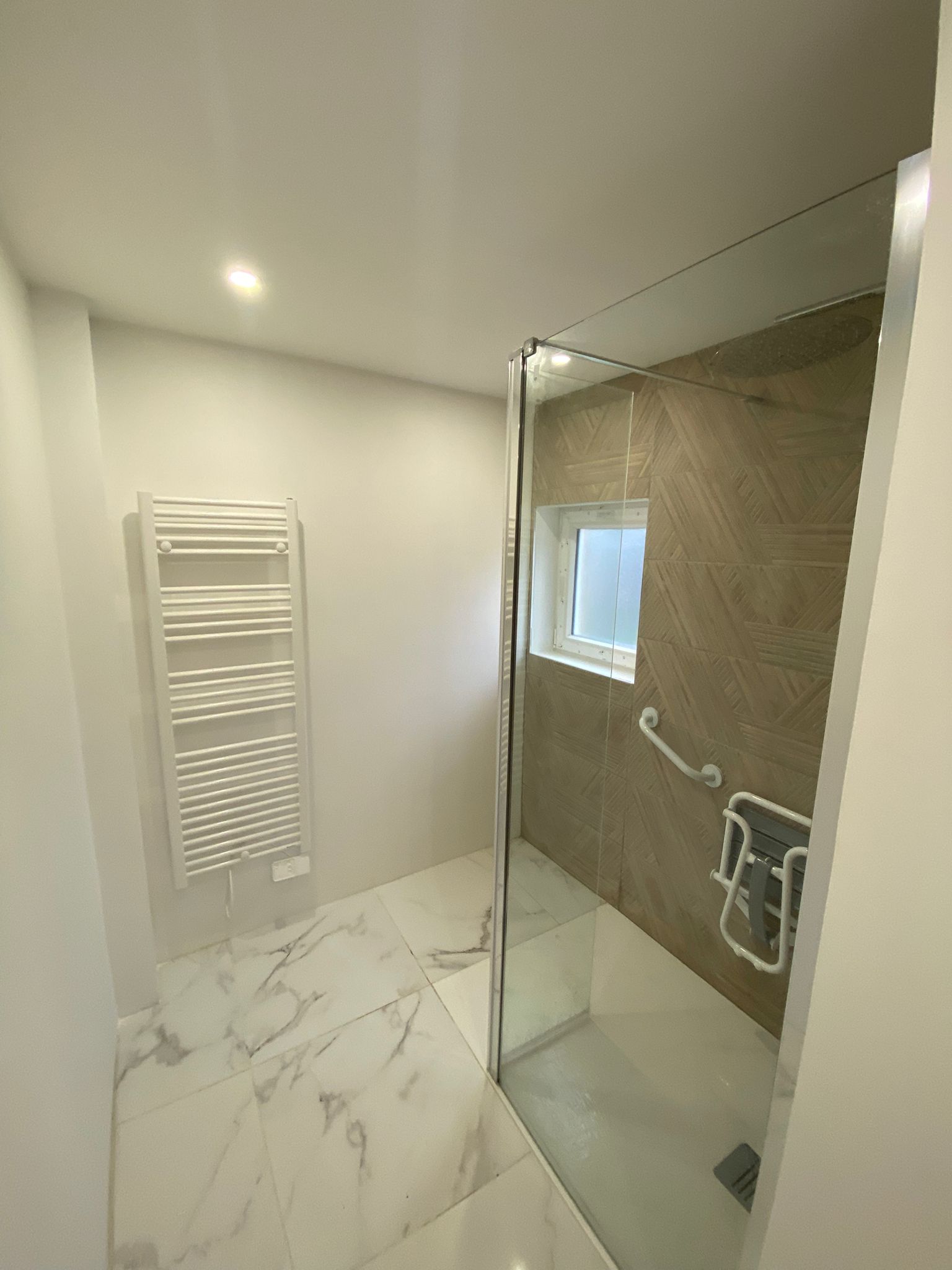 Création et adaptation de salles de bain pour personnes à mobilité réduite : douches sécurisées, barres d'appui et équipements ergonomiques pour une autonomie retrouvée.